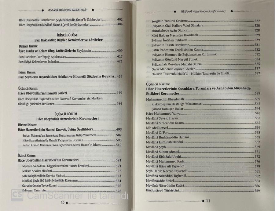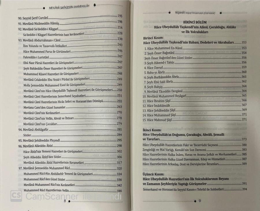 Bizden önce yaşamış şerefli İslam büyüklerinin eserlerini, menkıbelerini, makamlarını içine alan, araştırılmış, seçilmiş ve yazılmış olan bu eser ki; "Hayat Pınarından Damlalar" Mevlânâ Ali bin Hüseyin Es-Safiyüddin'e aittir. Müellif yazmış olduğu bu mübarek eserinde şöyle der; Allâhu Teâlâ'nın celle celâlühü lütfü ile (şanı yüce ve her şeyi gizlemeye kadir olan Hakk) ikram ve lütûflarının bereketi ile sınırsız ihsanları ile Hicri: 889 yılı Zilkade Ayının sonlarında velayet menzili, hidâyete geçti. Hakikate eren büyüklerin kutbu, iyi bir araştırmacı, alim ve Gavsü'l-Azamü'l muvahhidin, Hakkın yardım ettiği dünya ve dinin ileri geleni, temsilcisi Hace Ubeydullah kuddise sirruh Hazretlerinin yüce makamlarına katılmakla, şereflenmek nasib oldu. Bir kerede Hicri: 893 yılı, Rebfül-ahir Ayının başlarında bu mübarek zâtın dergâhında hizmet veren adamlarıyla tanışma imkânına kavuştum. Bana el verdi. O saadet sahibi Hace Hazretlerinin büyük meclislerinde daima Silsile-i Nakşibendiyye ulularının, «hasletleri, şemailleri ve faziletli menkıbeleri zikrolunup, bu hakir (zelil kul; ben) onları dinlemek lütfuna eriştim. Birbiri ardınca o zâtın anlatılan halini, muciz beyânlarından gelen ve cari olan marifet ve hakikat kokan yüksek sözlerini ve zarif, şerefli hallerinin bazılarından istifade etmeyi anlayıp, idrak ile uğurlu sayıp, öğrenmek benim için bir ganimet oluyordu. Bu eserin toplamı bir makale, üç maksad ve bir bitiş üzere yazıldı. Maksad: İlk başından sonuna kadar Nakşibendî silsilenin hocalarının tabakalarının (K. S.) beyanı ile ilgilidir. Birinci maksad Hâce Ubeydullâh Hazrederinin e'ba ve ecdadı ile akrabaları, doğum tarihleri, çocuklarında vaki olan halleri, şemaili, ahlâkı, tavırları, ilk hicret edişleri, seferleri, zamanın şeyhleri ile olan görüşmeleri hakkında ki beyânı içerir. İkinci maksad: Bazı hakikaderi, bilgileri, incelikleri, sözlerini, hikâyelerini ve emsalleri ile rivayetleri ve hallerini beyâna havidir. Üçüncüsü maksad: ise meclisler içinde Hâce Hazretlerinden vasıtasız duyulmuş sözleridir. Ayrıca Hâce Hazretierinden bazı görülen şahsına ait halleri ve kerametlerine dairdir. Her biri sağlam, emin, güvenilir ve adil insanlardan nakledilmiştir. Sıhhat derecesinden onlar mesuldürler. Her üç maksadın her birisi dahi üçer fasıldan oluşur. Hatime: Hâce Hazretlerinin kuddise sirruh Ahiret âlemine intikâl ve irtihâllarini beyân eder.